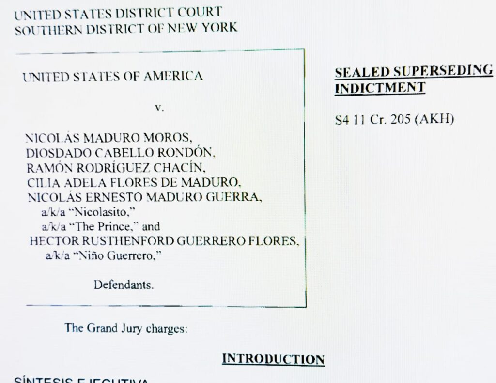 El Superseding Indictment presentado ante el Distrito Sur de Nueva York configura una acusación penal de narcoterrorismo transnacional contra una estructura criminal organizada desde el núcleo del poder estatal venezolano. El documento identifica a Nicolás Maduro Moros como jefe estratégico de una empresa criminal sostenida durante más de dos décadas, y a Cilia Adela Flores de Maduro como participante activa con responsabilidad penal autónoma. La acusación trasciende el narcotráfico tradicional al sostener que los acusados financiaron y fortalecieron organizaciones designadas como terroristas, configurando el delito federal de narco-terrorismo.
